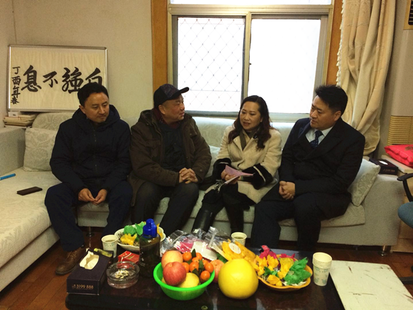 2月11日,市直三支部慰问三岔路社区粮食局病退员工糖尿病患者梁胜会。(吴广跃)