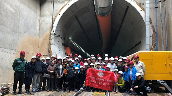 座谈会后,党员们通过工程电梯,下到地下30米左右的施工现场进行实地参观。