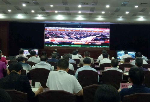 10月18日上午,中共福建省委统战部组织省直统战系统干部,在同心楼二层会议室集中收看中共十九大开幕式实况直播。省政协副主席、致公党福建省委主委薛卫民,致公党省委专职副主委吴棉国和致公党省委机关全体干部参加收看。