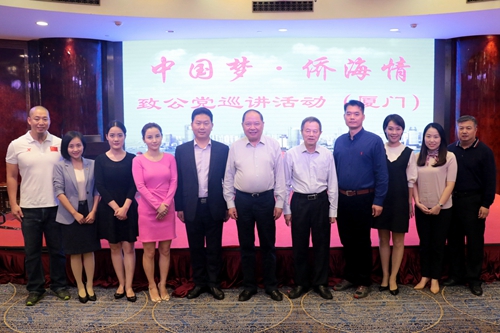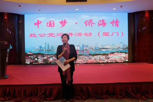 11月14日,“中国梦·侨海情”致公党巡讲活动在厦门举行,全国人大常委会委员、教科文卫委员会副主任,致公党中央副主席严以新,福建省政协副主席、致公党福建省委主委薛卫民,致公党中央组织部部长李刚,致公党中央宣传部副部长范承玲、副巡视员赵晓萍,致公党福建省委副主委刘珂、徐平东、吴棉国,秘书长王惠忠,中共厦门市委统战部副部长曾庆军,以及参加致公党中央党章修订会的与会领导专家,厦门市的致公党员共90余人出席巡讲活动。