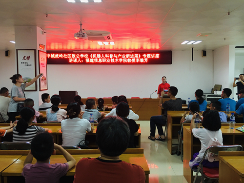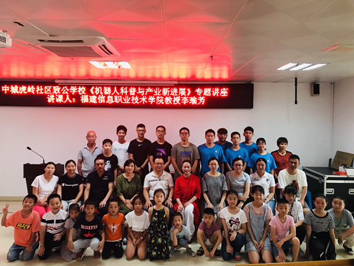 一个月之前,致公党省委会发函给致公党龙岩市委会:由致公党龙岩市委会负责社区人员的组织;由致公党信息学院支部负责讲座,并带领参加机器人竞赛的学生和移动机器人让社区学生体验。2019年7月31日,信息学院支部及学生一共12人参观了龙岩社区致公学校,并在龙岩社区致公学校为龙岩新罗区中城虎岭社区的中小学生开展机器人科普讲座。