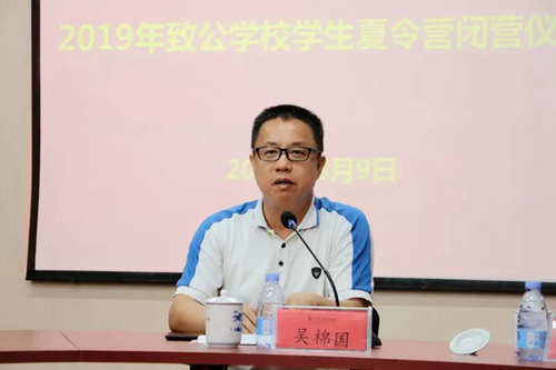 吴棉国表示,希望同学们用短短的暑期夏令营时间,加强同学之间交流沟通,拓宽视野、增长见识,在夏令营学习中,做一个好学生的带头人,积极提升学习能力和学习成绩,以激发同学们参与致公学校活动为荣,让致公学校夏令营成为带动致公学校教育质量提升的一个激励机制,使致公学校夏令营真正成为有影响力、有成效、有魅力的品牌。也希望同学们做个热爱国家、热爱家乡、有担当的人;做个有抱负、懂感恩、有情怀的人;真正成为有梦想、有追求的新时代青年。