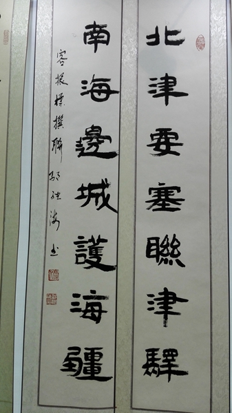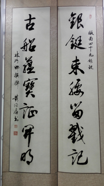 致公党阳江市委会原主委、市政协原副主席容振标和致公党阳江市委委员林巧娜为“南海一号”海丝文化遗产主题创作的楹联,致公党阳江市委会江城区总支部市党员、市美术家协会理事叶其电的国画山水美图等均在展览中展示。