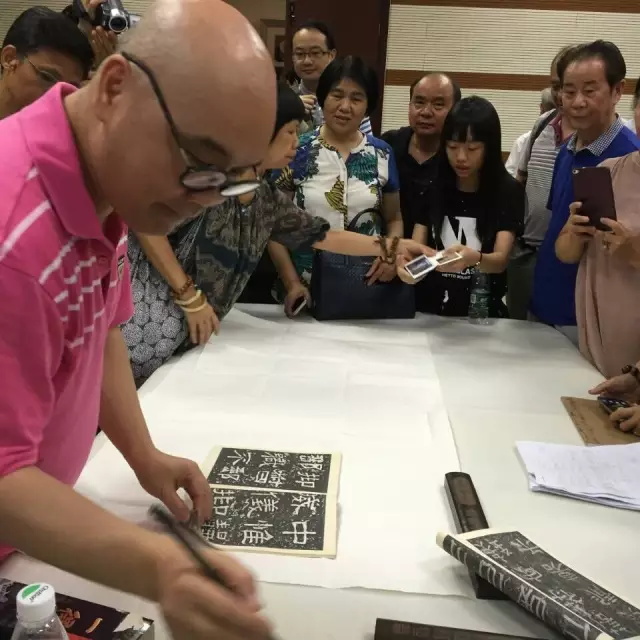 在7月1日上午的开幕式上,主办方特别邀请了中国书法家协会会员、广州市书法家协会副主席、广州致公书画院副院长陈立华为大家进行《漫谈隶书》讲座。讲座深入浅出,旁征博引,陈立华更现场示范隶书书法特点,听众反映热烈。