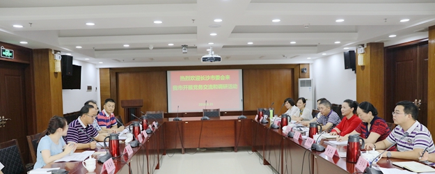 8月31日,长沙市委副主委枭燕、吴晓佳等一行10人赴广州开展“多层次资本市场发展”调研,并就党务工作与广州市委会开展座谈交流。广州市委会专职副主委岳朝阳、副主委黄小彪、秘书长魏复联、参工处副处长张卓翔,广州市金融局资本市场处副主任科员陈漾,利绸资本资产管理有限公司华南区总经理、致公党成员林琳参加了座谈会,岳朝阳主持会议。