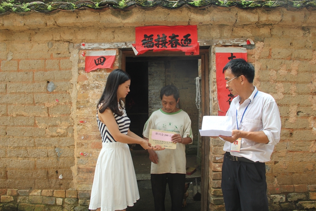 据悉,回龙镇宾村、升平村被列入精准扶贫帮扶对象的有贫困户、低保户、五保户共111户,其中,宾村为60户,升平村为51户。肇庆市总支部负责帮扶的3户都在宾村。活动中,总支部代表直接到帮扶对象家中上门进行慰问,详细了解了帮扶对象的生活、生产情况和实际困难,并送上了慰问金。