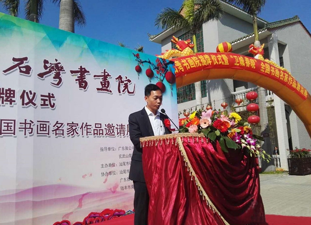 1月1日上午,由广东致公书画院参与指导、广东致公书画院汕尾分院大力支持的汕尾市碣石湾书画院成立仪式暨 “卫城春晚”全国书画名家作品邀请展在汕尾市陆丰碣石镇隆重举行。中国书法家协会会员、广东致公书画院副院长、致公党汕尾市直陆丰支部委员吴荣东当选为首届汕尾市碣石湾书画院院长。中国书协会员、广东致公书画院副院长周雄,汕尾市委会专职副主委刘耿文、副主委张武位等省、市领导到会祝贺并指导。汕尾市和陆丰市十几个单位领导及200多位来自全国各地的书画名家参与,湖南省军区副司令员、中国书法家协会会员戴焕将军应邀担任碣石湾书画院名誉院长。