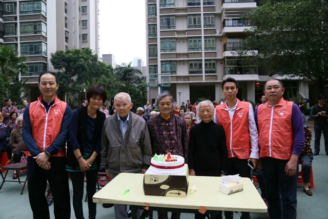活动现场充满着和谐而又喜庆热烈的气氛,除了为社区老人们和居民安排了丰富多彩的节目表演外,在“致福以老扶老”志愿服务活动专区,珠海市委会党员、市医药流通行业协会会长苏伟坤带领协会中心人医护员为老人们提供了免费量血压、健康咨询等医疗服务,还为居民赠送钙片100多份;党员书法家房义强为社区居民送上150副春联;珠海市委会副主委杨政、市委委员吴少伟、刘跃玲等还为社区的高龄长者送上了新春慰问。大家还为2017年1月生日的80岁社区老人集体庆祝了生日,这也是自“致福以老扶老”北岭示范社区11月挂牌以来第三次为社区老人们举办集体生日会,让老人们感受到社会对他们的关爱。