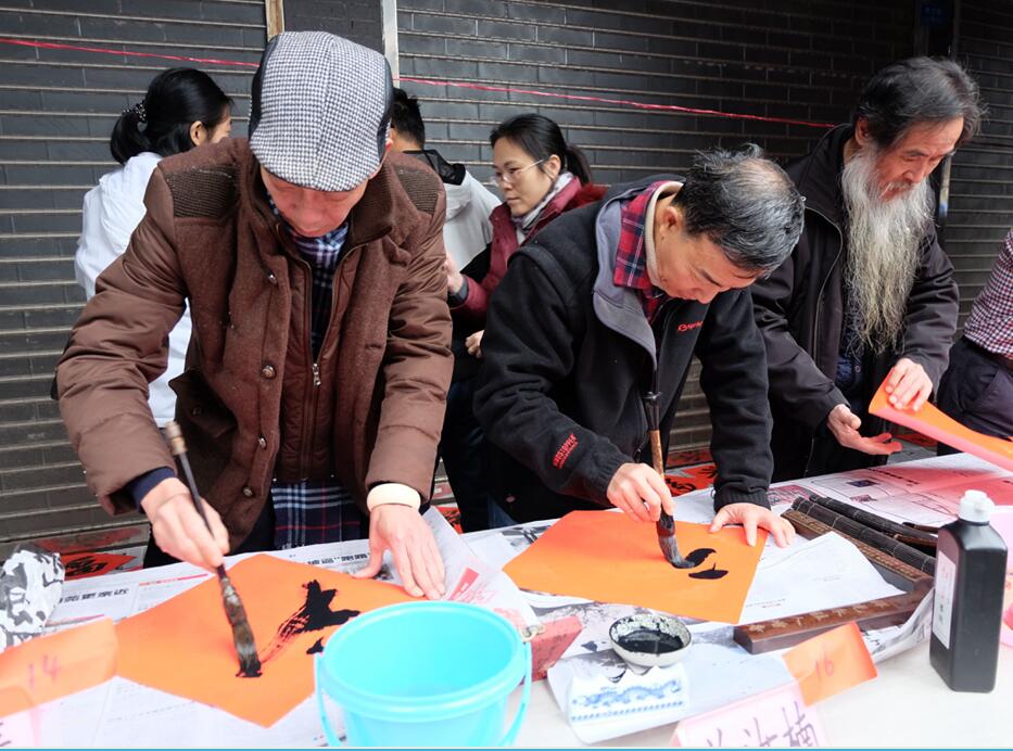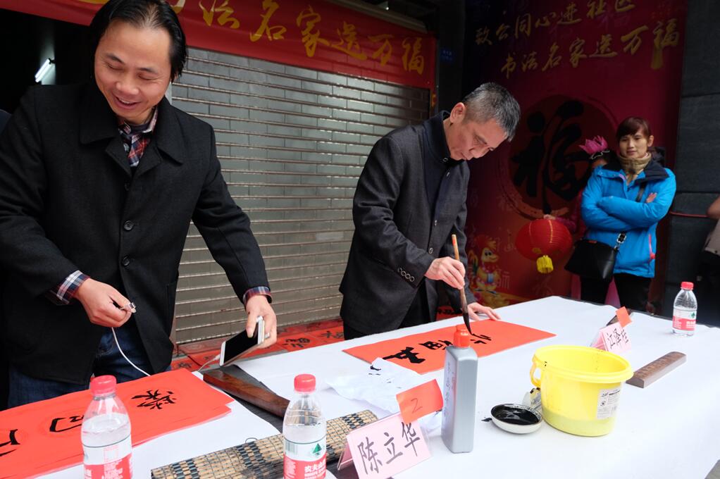 1月17日,致公党广州市委社会服务委员会、广州致公书画院、致公党越秀区基层委员会联合在越秀区珠光街仰忠社区文化广场举办“致公同心进社区,书法名家送万福”活动,组织广州致公书画院的书法名家,现场挥毫泼墨,书写“福”字春联和四字祝福条幅送给社区居民。