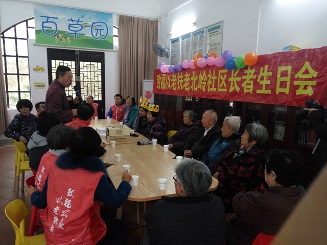2月25日,致公党珠海市委会在珠海北岭社区开展每月一次的“致福以老扶老社区长者生日会”。该项活动已经连续开展四期,获得了社区居民和老人们的热烈欢迎。市委会主委吕简承,副主委杨政,市委委员刘跃玲等参加了活动。