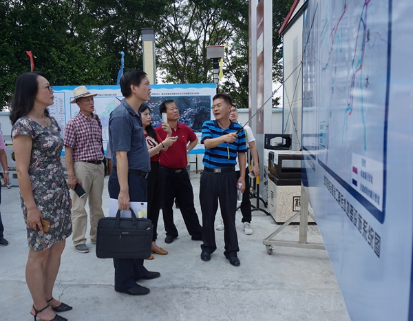 在江门市和鹤山市水务局相关负责人的陪同下,考察组一行考察了沙坪河河道疏通、景观改造施工现场,听取综合整治项目规划设计以及施工情况的介绍。
