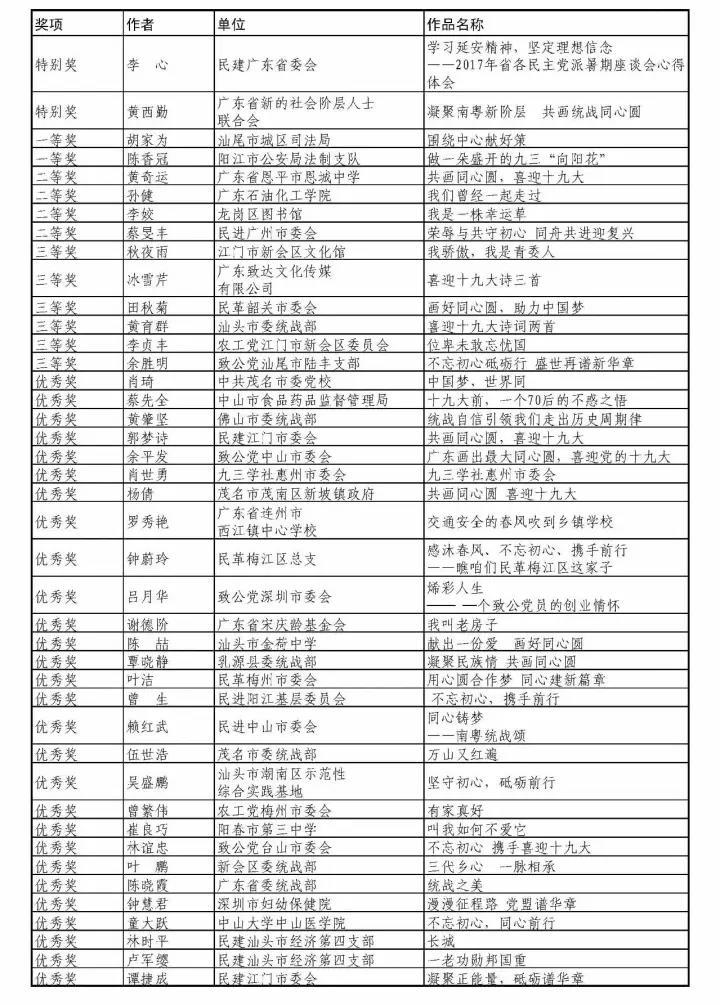 近期,在中共广东省委统战部组织的“共画同心圆 喜迎十九大”征文比赛中,我省5名致公党员获奖。