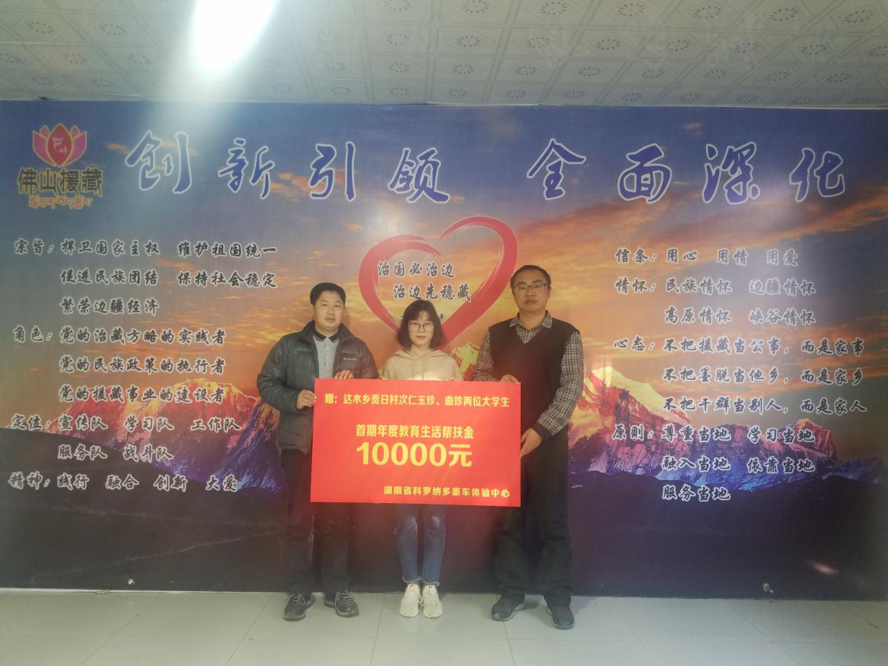 通过调研,李展健了解到贡日村有贫困大学生2人,因为家庭困难无法提供在校期间的生活费。李展健立马联系社会上的朋友。最后湖南省科罗纳多豪车体验中心决定对她们进行了支助,给予每人每学年5000元帮扶。