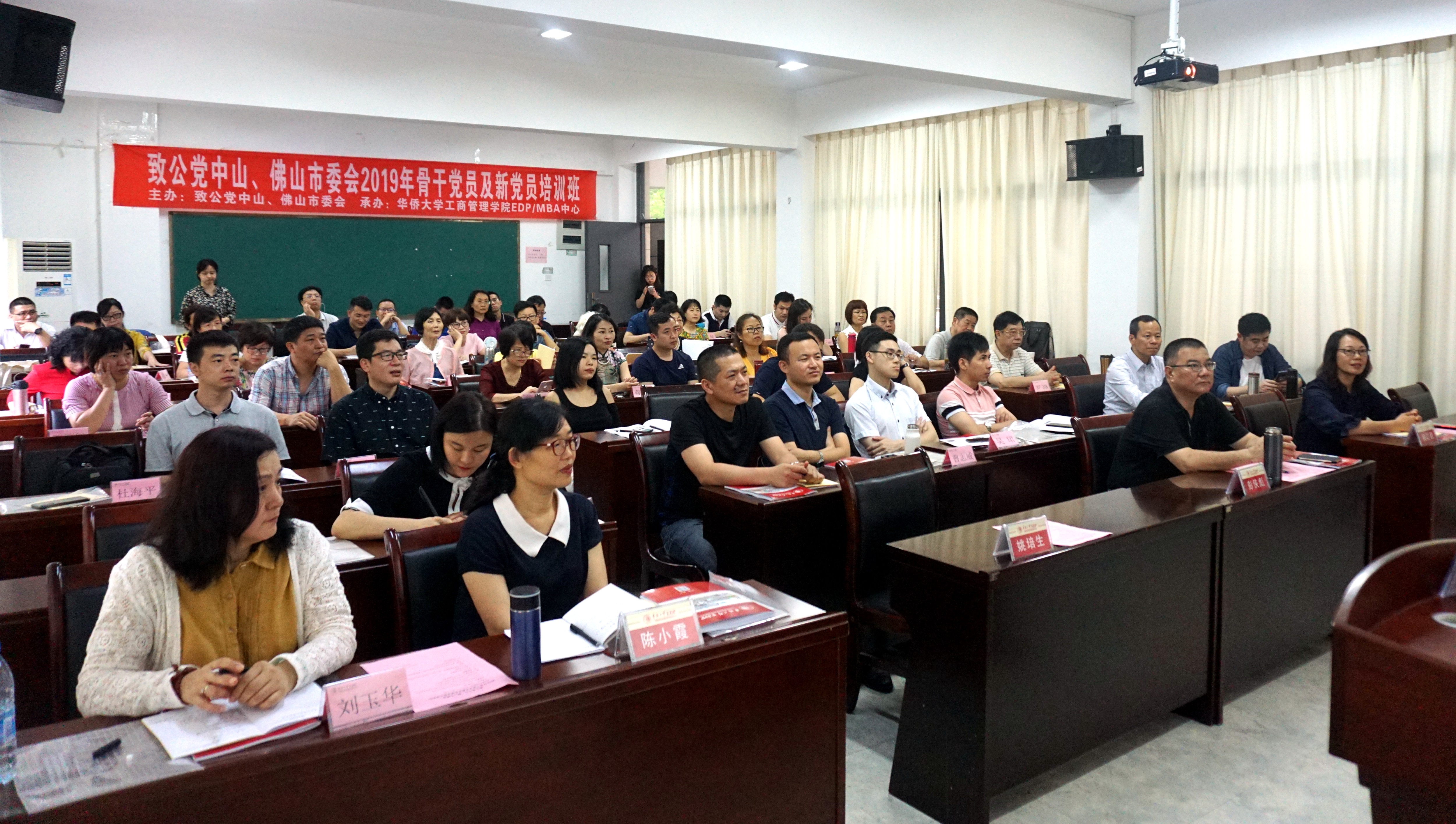 5月27-31日,致公党中山市委会与致公党佛山市委会联合到位于福建省泉州市的华侨大学举办2019年骨干党员及新党员培训班。中山市委会副主委彭侠彪、庾江碧,佛山市委会专职副主委陈小霞,两地市委会的骨干党员、新党员以及办公室专干等共55人参加培训。彭侠彪作开班动员讲话。