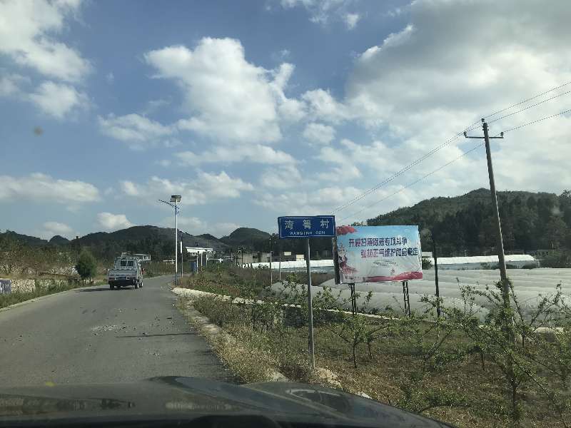 10月9日,我随二中校长林琳、副校长石平驱车去湾箐村。从高速下到县道,从县道行至村道,一路阳光明媚、景色怡人。路不宽,还算平整,全部是水泥路面,只是弯多,会车时总让人有点心惊的感觉。