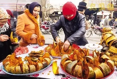 重庆的一个朋友告诉我,是否能够如新疆的方式烤南瓜,南瓜在新疆维吾尔语里成为“卡瓦”,烤南瓜在南疆非常多见。在巴扎里,你能看到一个大推车上放着很多被切成瓣的南瓜,不到跟前,你就可以闻到一阵阵南瓜的香气。