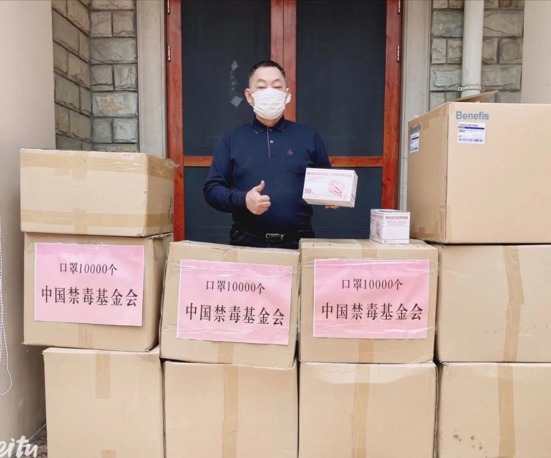 姚桂宗捐赠两批12000只口罩到中国禁毒基金会