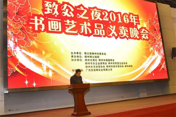“珍藏一方丹青,奉献十分真情。”2016年12月30日晚,“致公之夜”2016年书画艺术品义卖活动在双渔汇天幕厅隆重举行。本次义卖晚会由致公党柳州市委主办,柳州日报社、柳州市福建商会、柳州市女企业家商会、柳州市民营企业协会、柳州市美术家协会、柳州市书法家协会、柳州画院、广西喜莲娜实业有限公司给予活动大力支持。