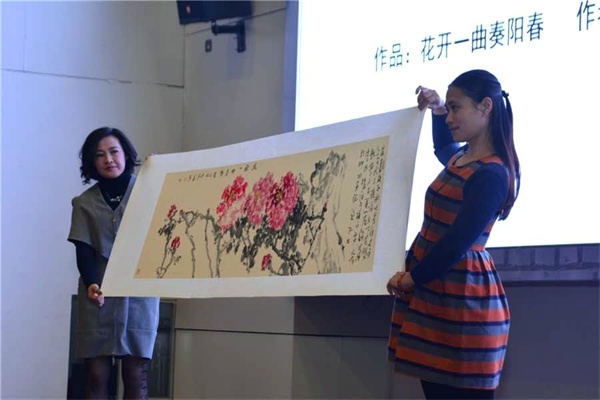 党员展示本场拍卖最高得价作品《花开一曲奏阳春》