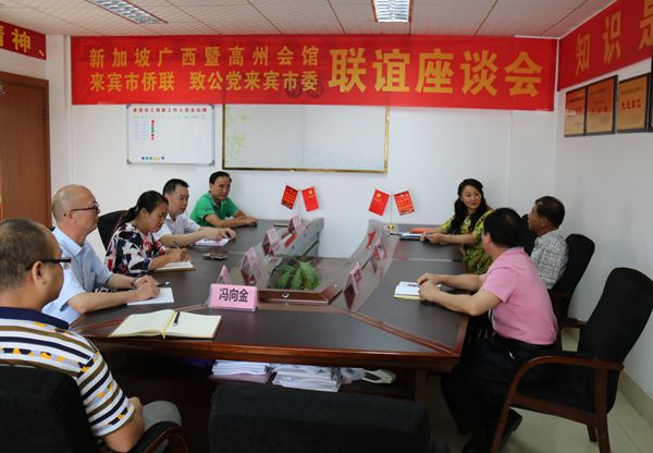 2017年5月17日,新加坡广西暨高州会馆副会长凌大祥先生到来宾市开展联谊活动。凌大祥副会长一行在致公党来宾市委会专职副主委廖红生、来宾市侨联主席文上乾的陪同下参观了广西红河红现代特色农业(核心)示范区、来宾市博物馆及市容市貌。随后到来宾市工商联会议室举行联谊座谈。在座谈会上,致公党来宾市委会主委杨俭对凌大祥副会长一行的到访表示欢迎,对新加坡广西暨高州会馆长期以来关心和支持来宾特别是侨界发展表示感谢,并希望今后双方多加交往,增进联系。凌大祥副会长表示作为老朋友,我已两次到访来宾,来宾的变化日新月异,来宾的归侨侨眷生活越来越美好,今后我们还会组织我们会员到来宾增进我们的感情和友谊。