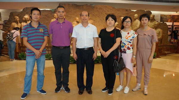 防城港市委会主委庞章辉(左三)与参加培训的党员们在中国民主党派历史陈列馆合影