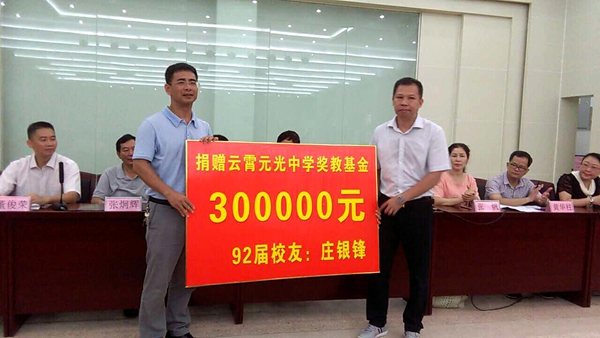 南宁市致公党员庄银锋向福建云霄云光中学捐赠30万元