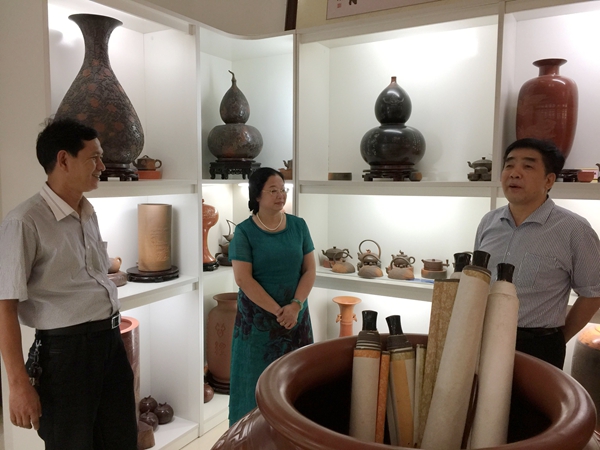 9月21日,中共钦州市委统战部调研员张朝戈到钦州东方坭兴陶艺有限公司看望“全国三八红旗手”陈梅党员,致公党钦州市委李永威主委陪同。