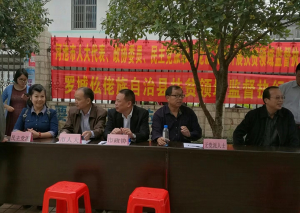 2017年10月25日至26日,致公党河池市委员会选派机关专干、市委委员赖莹莹和金城江区支部副主委黄莉洨两位同志参加由中共河池市纪委组织的“关于组织人大代表、政协委员、民主党派和无党派人士开展扶贫领域监督执纪问责工作巡查调研活动”。