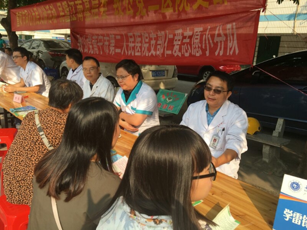 10月28日重阳佳节之际,为了积极响应十九大报告中提出的“健康中国战略”,在中共江南区委统战部的指导和五一东路社区居委会的协助下,致公党南宁市江南总支二医院支部派出10名医疗专家联合民盟江南基层委组成的工作队,在五一东路南宁壮宁工贸园生活区开展了重阳节“同心为民”义诊活动,向居民提供健康咨询、普及急救知识和技能。