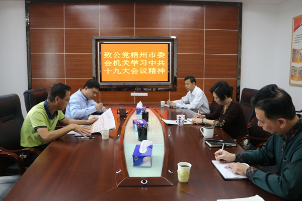 2017年10月26日,致公党梧州市委会召开机关工作会议,组织机关干部学习中共十九大精神,并且座谈交流心得体会。