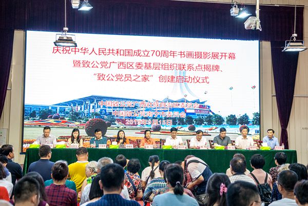 为隆重庆祝中华人民共和国成立70周年,大力弘扬以爱国主义为核心的伟大民族精神和“致力为公、侨海报国”的优良传统,2019年9月15日上午,致公党南宁市委会举办庆祝中华人民共和国成立70周年书画摄影展开幕暨致公党广西区委基层组织联系点揭牌、“致公党员之家”创建启动仪式。