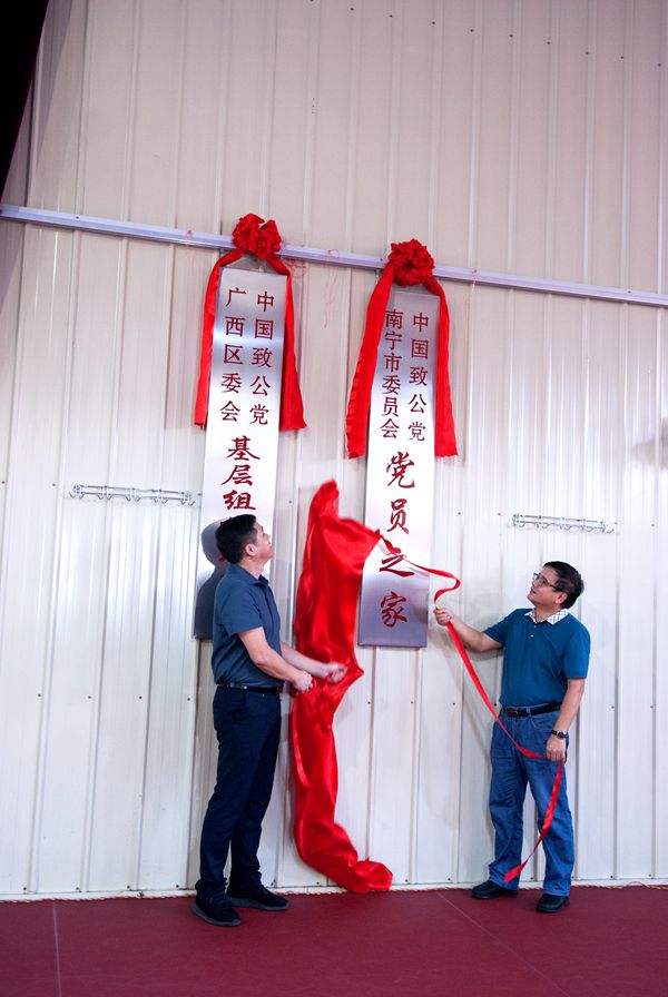 中共南宁市委统战部副部长吕智勇,中共西乡塘区委常委、统战部部长林拓共同为“中国致公党南宁市委员会党员之家”揭牌。(熊钢摄)
