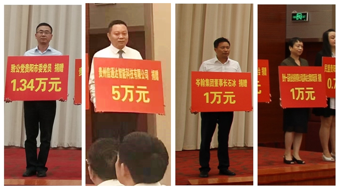 8月1日,在和谐贵阳促进会举办的“助脱贫、促发展、促和谐”捐赠仪式上,致公党贵阳市委秘书长谢文成代表贵阳市致公党员捐赠善款13400元,党员企业家戚玉峰捐赠善款5万元,石冰、欧阳廷菊各捐赠善款1万元。