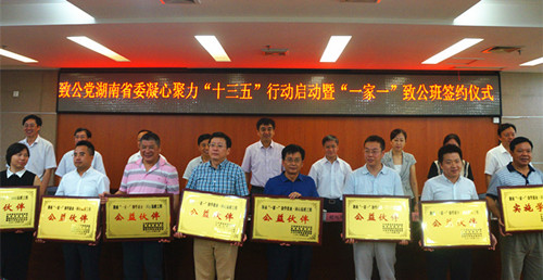 8月1日,致公党湖南省委“凝心聚力‘十三五’行动启动暨‘一家一’致公班签约仪式在民主党派省委机关会议中心三楼会议室举行,标志着致公党各级组织和广大致公党员围绕省委、省政府中心工作和发展大局,凝心汇智聚力“十三五”行动全面铺开。