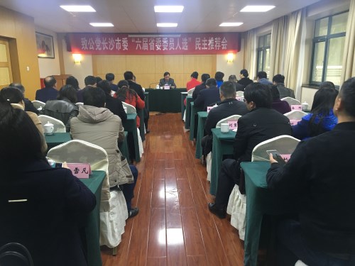 3月20日上午,致公党长沙市委召开了“第六届省委委员”民主推荐会,全体市委委员、现任省委委员、市委机关副科级以上干部、市委监督委员会成员、各工委主委等参加了会议。会议由长沙市人大常委会副主任、致公党市委主委王国海主持。