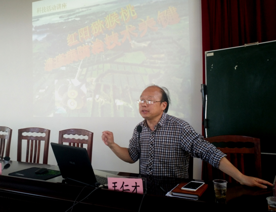 培训现场,王仁才教授进行了“红心猕猴桃溃疡病防治技术关键”专题讲座。王仁才教授结合永定区实际情况,详细讲解了猕猴桃育苗、用肥、修型、剪枝等过程中的防治知识,并与种植户亲切交谈,详细询问红心猕猴桃种植情况及生产过程中遇到的技术难题,鼓励种植户时刻与专家、当地农业技术人员保持联系,多咨询多沟通多交流,及时发现问题解决问题,学会运用科技的力量保生产、促增收。