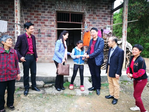 汤佩玲小朋友今年12岁,自幼丧父,家中只有身患脑瘫的母亲和年已80高龄的太姥姥,经济来源全靠村委会的困难补助,家庭生活十分困难。中共雨花区委统战部常务副部长邹开其了解该户村民的实际困难后,携雨花区政协委员和致公党员们一道,带着大米、食用油、水果等慰问物资及2000元慰问金,来到该户村民家中进行慰问。