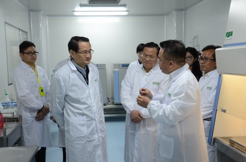 致公党长沙市委常委、湖南昭泰集团董事长汤朝阳,湘雅二医院胸外科主任喻风雷教授陪同易炼红书记一行参观了昭泰集团拥有完全自主知识产权的第三代CAR-T细胞制备洁净实验室、全球第一个T淋巴细胞库和人源化肝脏小鼠洁净生产车间。
