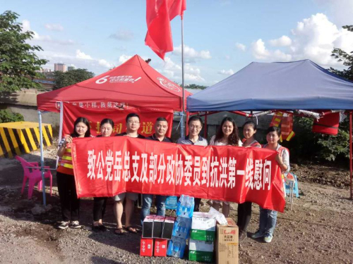 7月3 日下午,致公党湖南省委专职副主委向佐谊带领致公党省委机关干部和致公麓商会的企业家们带着4万多元的矿泉水、方便面、八宝粥、消毒药物等抗洪救灾物资赴长沙市望城区丁字湾街道翻身垸抗洪前线。