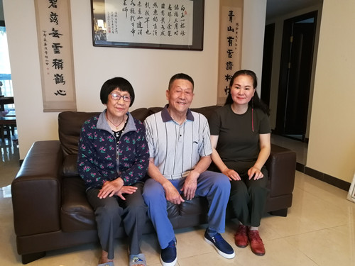 陈跃平、柳玲玲握着郑老的手,关切地询问他的病情、饮食起居、生活情况,与二老一起合影,并送上了一些保健身体的礼品,祝愿他们健康长寿。