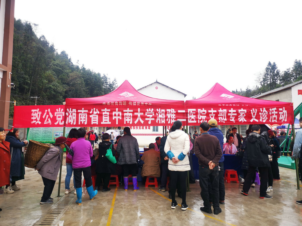 此外,上午10点开始,由致公党中南大学大学湘雅二医院支部4名教授组成的专家团队,在村委会门前开始举行义诊活动。村民纷纷排起长队等待医生就诊,专家们认真对村民咨询的病症问题进行了解答,为村民做了基础检查,提出诊疗建议。秋雨带来阵阵凉意,义诊却热情不减,此次义诊长达3个小时,4名专家共为90多名村民提供了义诊服务,为当地老百姓送上了健康和温暖。