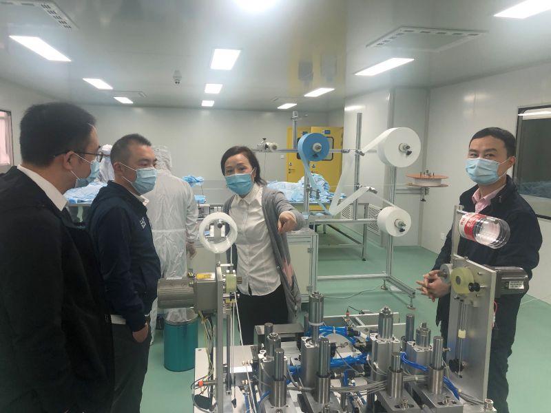 美安医药是一家科技型医疗器械生产企业,为支持梁溪区的抗疫工作,复工后企业第一时间按照区政府的产业布局要求,引进一台全自动口罩生产线。但生产过程中由于缺乏专业人员调试,生产线的自动化程度低,产量始终上不去。得知这一消息后,高慧立刻联系了党内机械制造和自动化专家,主动上门服务。