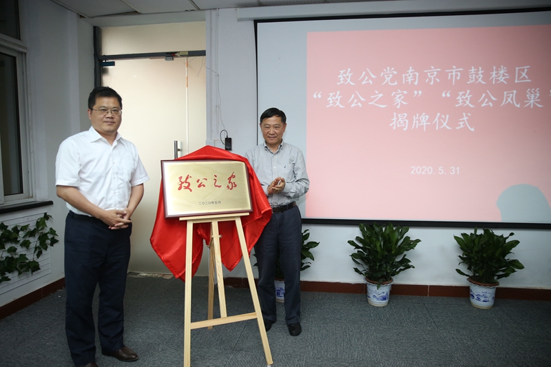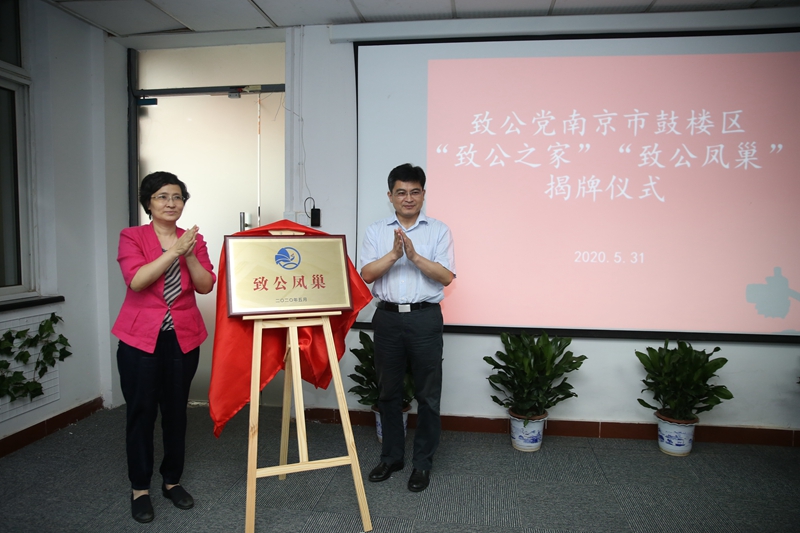 南京市政协副主席、致公党江苏省委副主委、南京市委主委胡勤刚和中共鼓楼区委常委、统战部部长、区政协党组副书记王玉春共同为鼓楼区“致公之家”揭牌。中共南京市委统战部副部长、市社院党组书记孙绿叶和江苏省政协副秘书长、致公党江苏省委专职副主委米其智共同为“致公凤巢”揭牌。