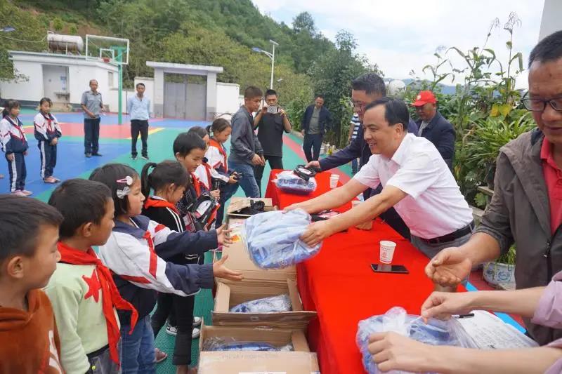 9月16日,宁蒗彝族自治县最边远的干海子完小校园里,受致公党南通市委会委托,丽江市委统战部、致公党丽江支部的同志们为全校60多名学生每人带来一套运动服、一只篮球、一根跳绳。