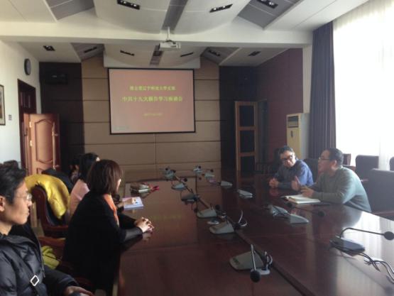 12月26日,致公党辽宁科技大学支部召开学习中共十九大报告精神专题座谈会,邀请辽宁科技大学宣传统战部张佳亮部长为科大支部党员解读中共十九大报告。市委委员、支部主委胡君一及支部党员总计15人参加座谈会。