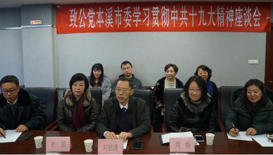 12月17日,致公党本溪市委召开学习贯彻中共十九大精神座谈会,会议由市委主委刘德清主持,副主委杜娟、刘畅,市委委员、各支部主委参加了会议。