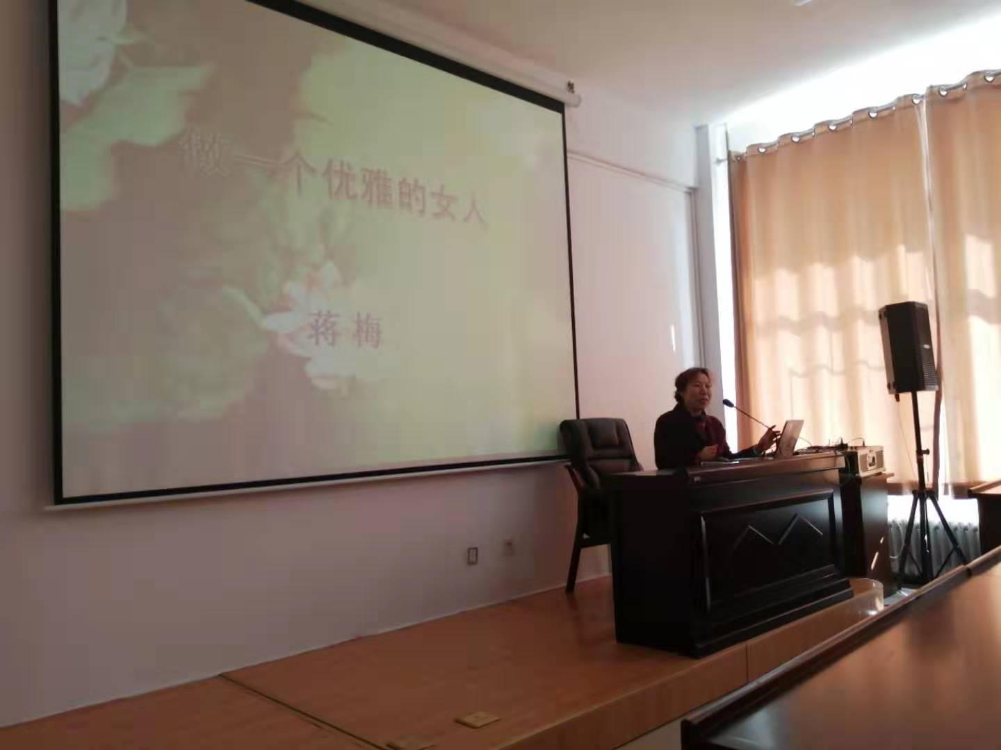妇委会邀请党校蒋梅老师讲课——如何做一个优雅的女人,蒋梅老师风趣优雅、入情入理的话语让大家受益匪浅,不时发出会心的笑声。