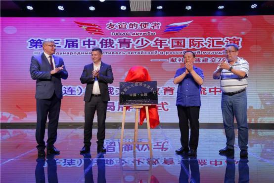 演出结束后,致公党辽宁省委常委、大连市委会副主委崔岩等,为大连中俄文化教育交流中心揭牌,标志中俄文化教育领域交流又向前迈进一步。两国领导和嘉宾为参加演出的青少年们颁发了“中俄友谊使者”的荣誉证书。