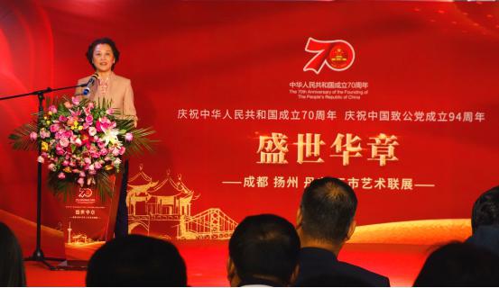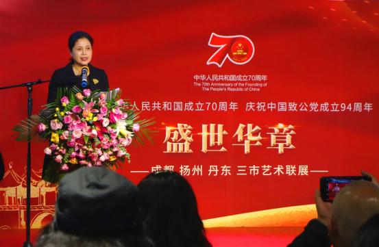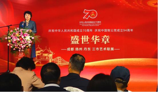 10月10日,由致公党成都市委员会、致公党扬州市委员会、致公党丹东市委员会共同主办,丹东边境经济合作区管理委员会协办,丹东新区美术馆承办的“盛世华章——成都、扬州、丹东三市艺术联展”隆重启幕。