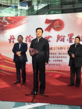 10月15日,由致公党辽宁省委与致公党河南省委联合举办、致公党大连市委承办的“丹青绘盛世 翰墨颂祖国”——庆祝新中国成立70周年书画展在大连博物馆开幕。全国政协委员、致公党中央常委、致公党辽宁省委主委王大鸣,全国政协委员、致公党中央常委、致公党河南省委主委王鹏杰出席开幕仪式并讲话。开幕式由致公党辽宁省文化委员会主任、大连市委副主委、辽宁师范大学美术学院教授关慧良主持。致公党河南省委组织部门负责人李军营、致公党大连市委专职副主委崔岩、致公党辽宁省委组织宣传(参政议政)部部长年海艳、致公党辽宁省委文化委员会副主任马志刚参加开幕式。